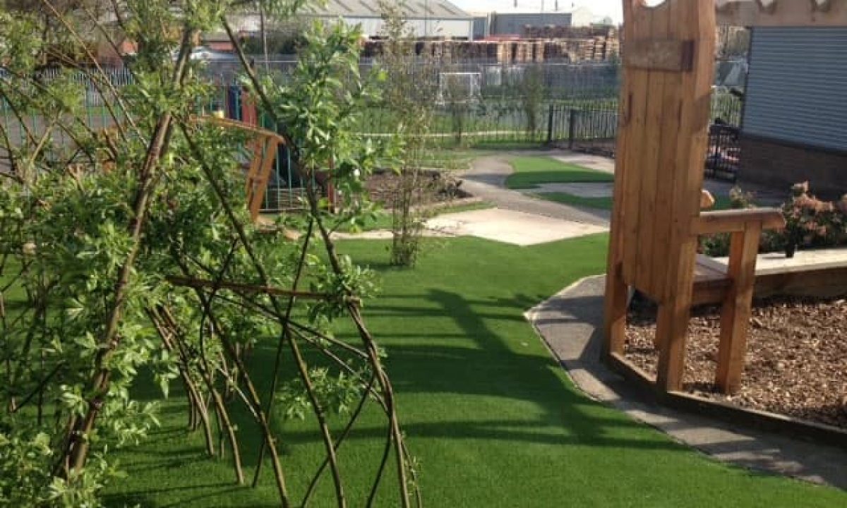The team at Easigrass Cheshire and Greater Manchester installed an exciting outdoor space for this school in Wigan, Greater Manchester. The Easigrass Holland Park product was installed around existing and new features. Mounds and shapes were created and grassed to provide additional interest to this heavy use outdoor space